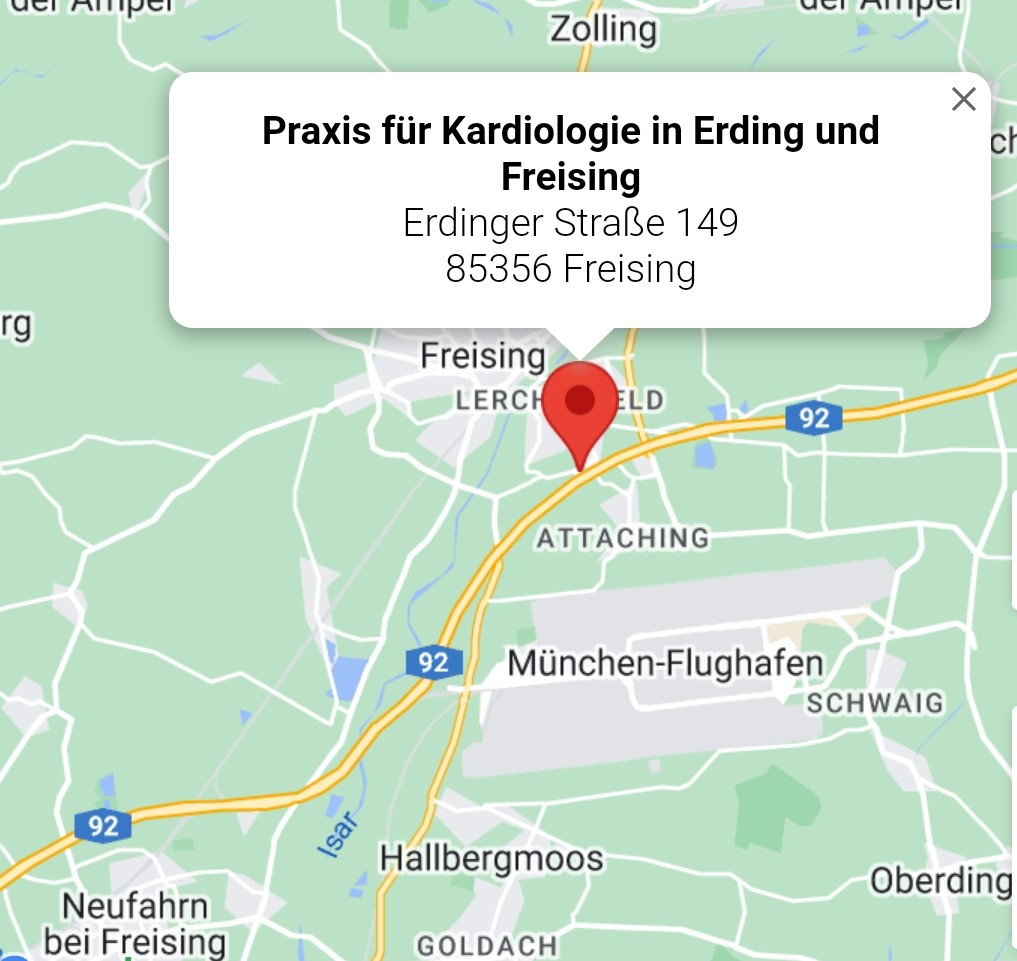 Die Praxis liegt im Gewerbegebiet "Erdinger Straße" (Lerchenfeld) in unmittelbarer Nähe der A92 zwischen den beiden Ausfahrten "Freising Mitte" und "Freising Ost".